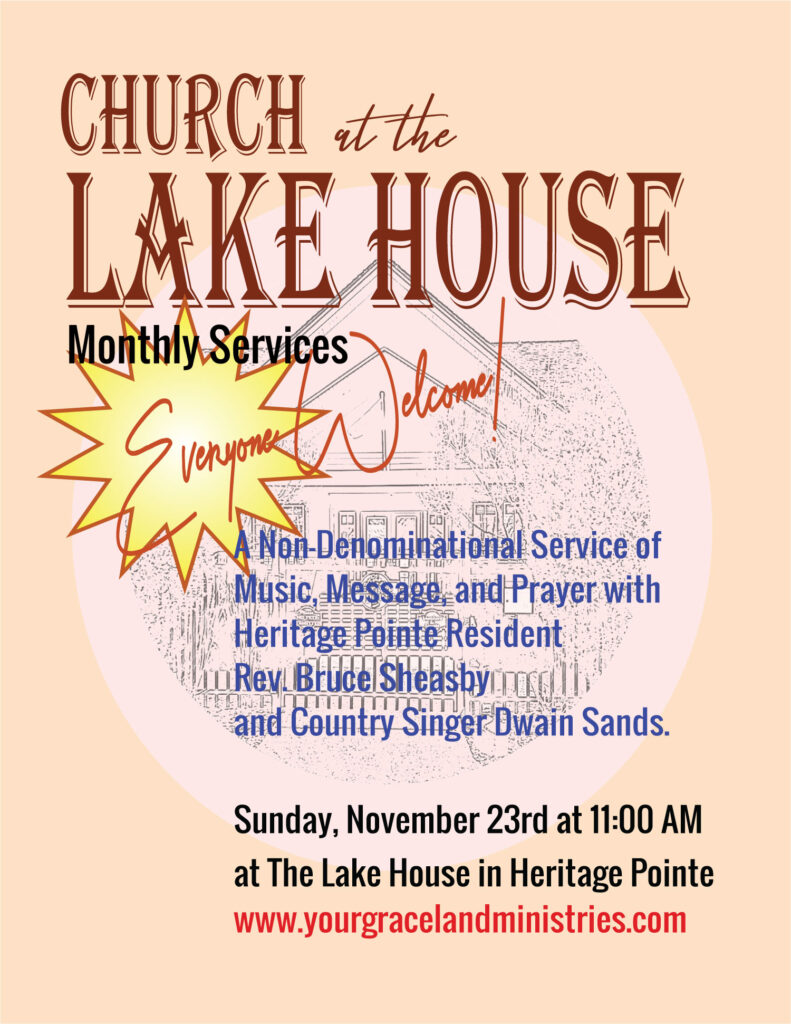 for “in person” Church services and fellowship at The Lake House at Heritage Pointe.